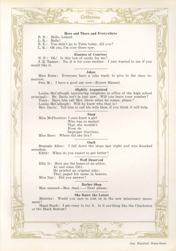 This Criterion Courtesy of Joel Phleat Boyd Class of 1970 and Dana Pruitt Boyd Class of 1965